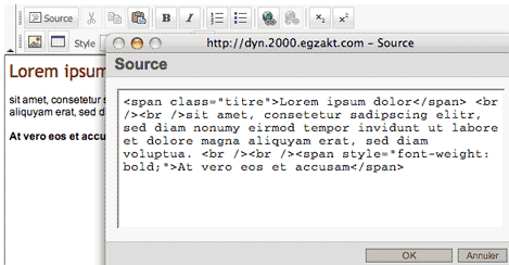 Il est possible d’éditer le code html généré par l’éditeur en cliquant sur l’icône